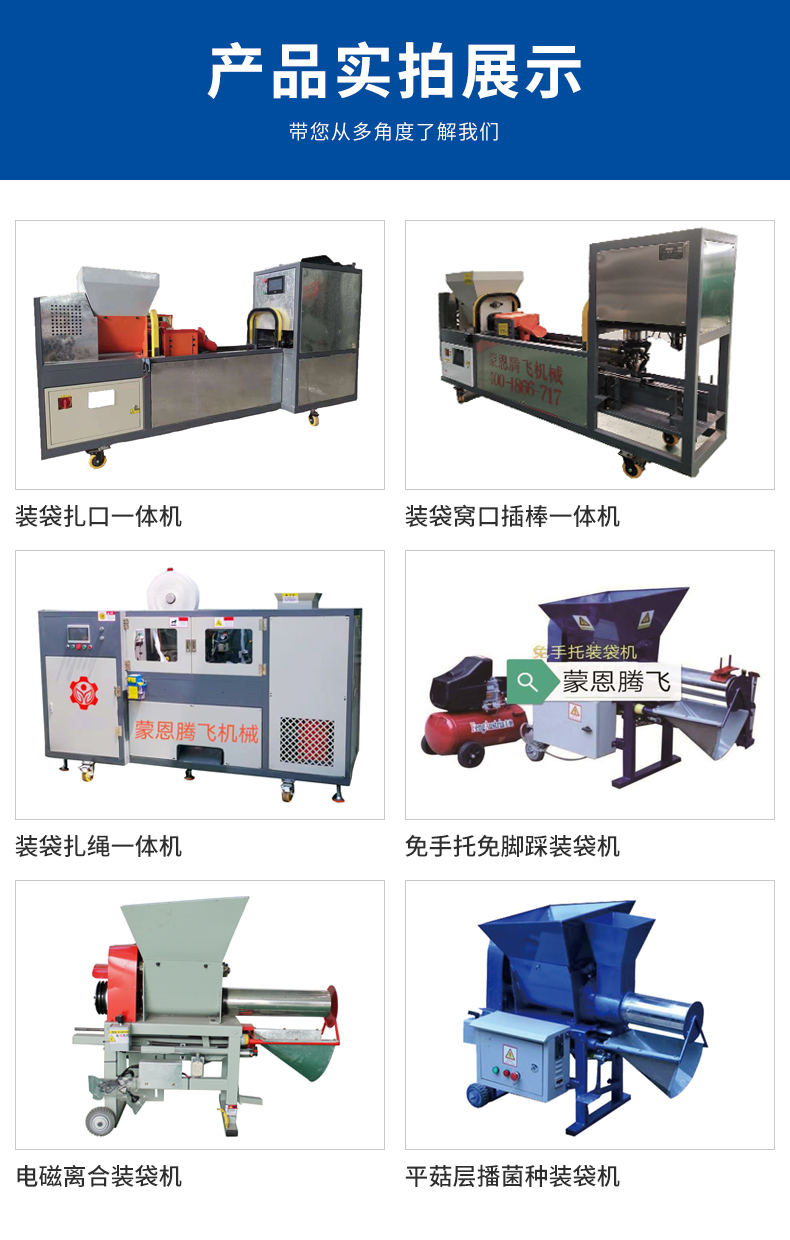 裝袋機 扎繩機 翻料機 一體機 全自動生產線 烘干機 上架機 上料機 分離機 鍋爐 滅菌柜 攪拌機 提升機輸送帶